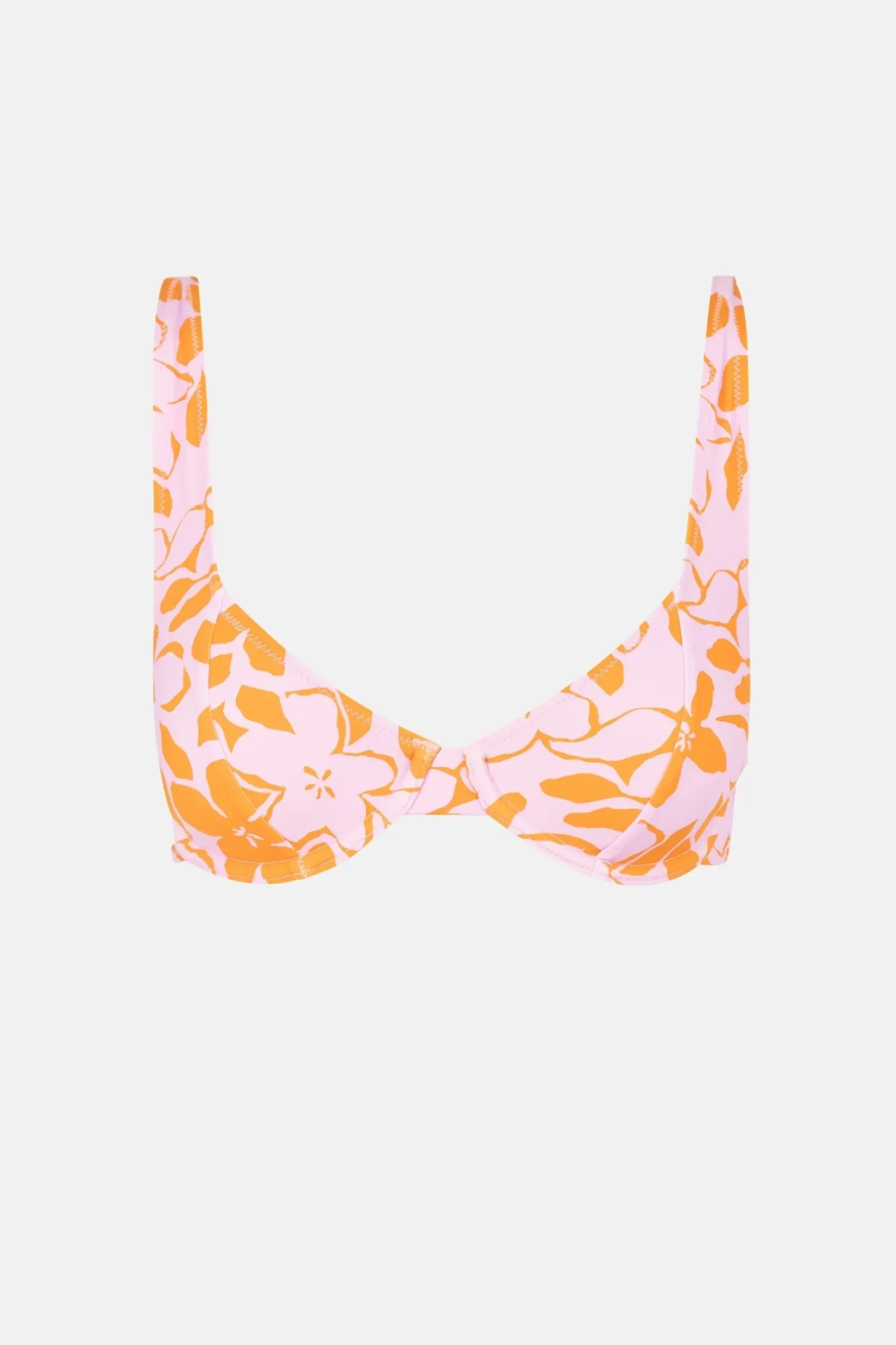 Flourish in floral with the Bora Bora Floral Panelled Underwire Top. Tailored for support and style, this top features encased underwire and soft wide shoulder straps that ensure comfort. The adjustable back straps and charming pink hue make it perfect for beach art shows or a tranquil day by the sea.