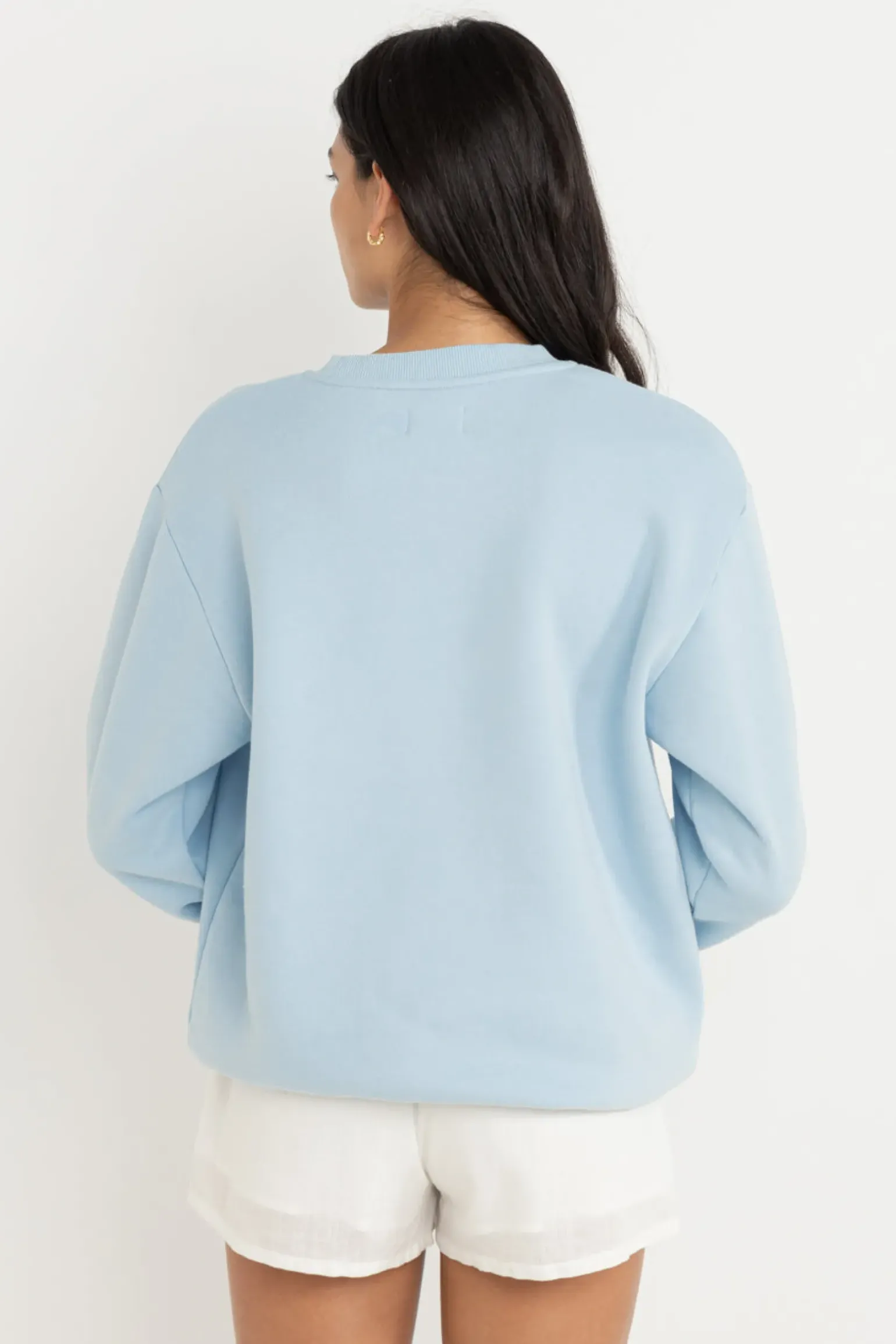 Laidback and carefree, the Classic Brand Fleece in Blue is made of a super soft and cosy brushed fleece in an oversized relaxed fit, perfect for catching the sunset amongst the fresh sea breeze.