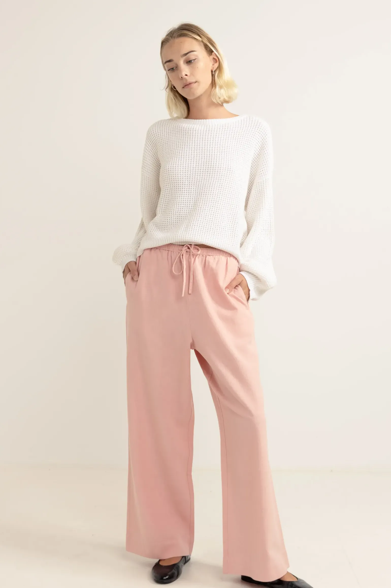 For soft sunny days moving through the cool breeze, the Classic Drawstring Pant is cut from a breathable blend of ramie fibres with an elasticated waist front, and channelled drawcord in a lovably comfortable wide fit.