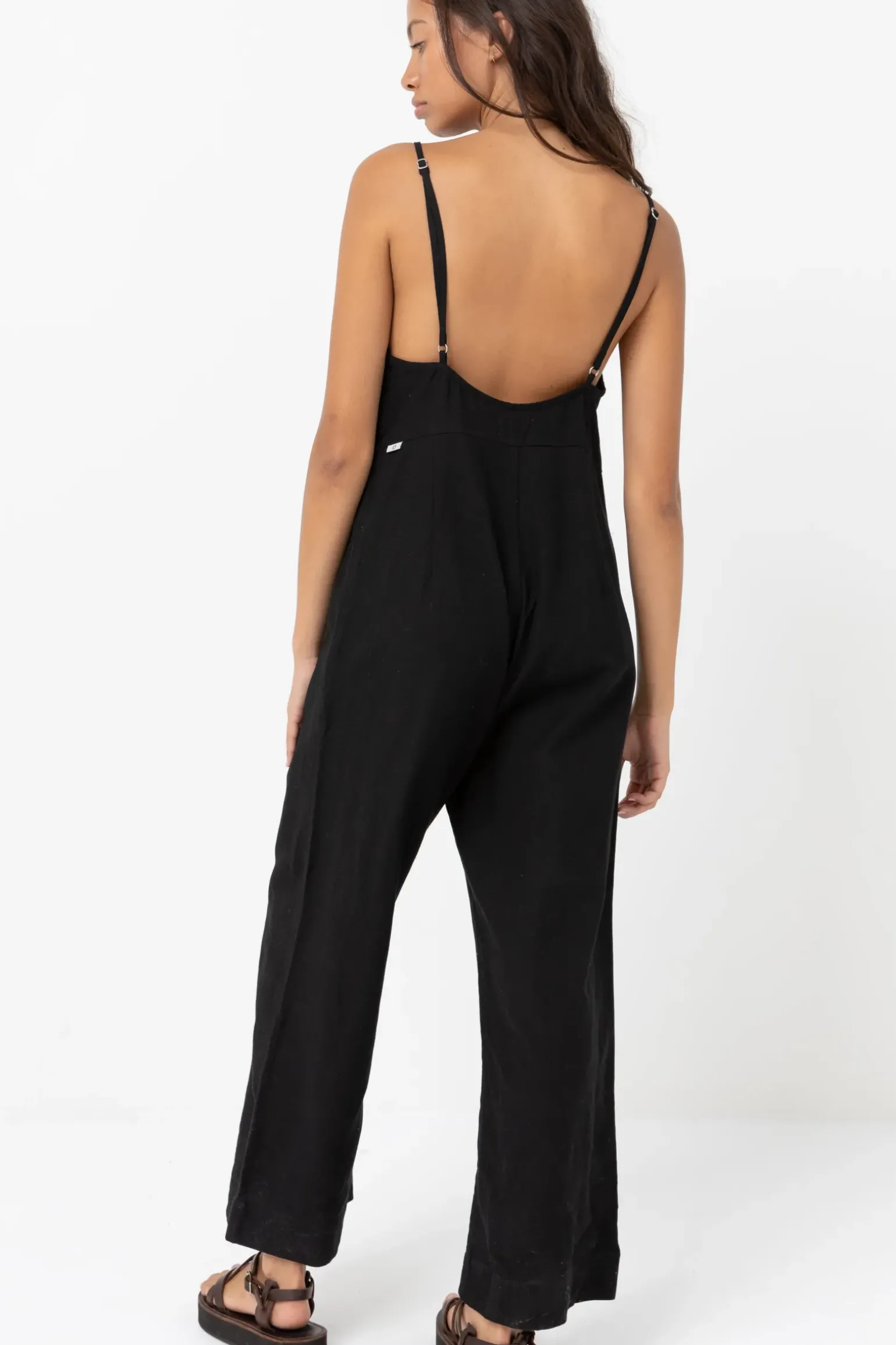 For soft sunny days moving through the cool breeze, the Classic Jumpsuit is cut from a breathable ramie fibre blend, an easy wearing clean and stylish look to wear through the seasons. —- Material 60% Rayon 40% Linen —- Features Linen look with a soft hand feel Straight apron style neckline Adjustable straps Low ba