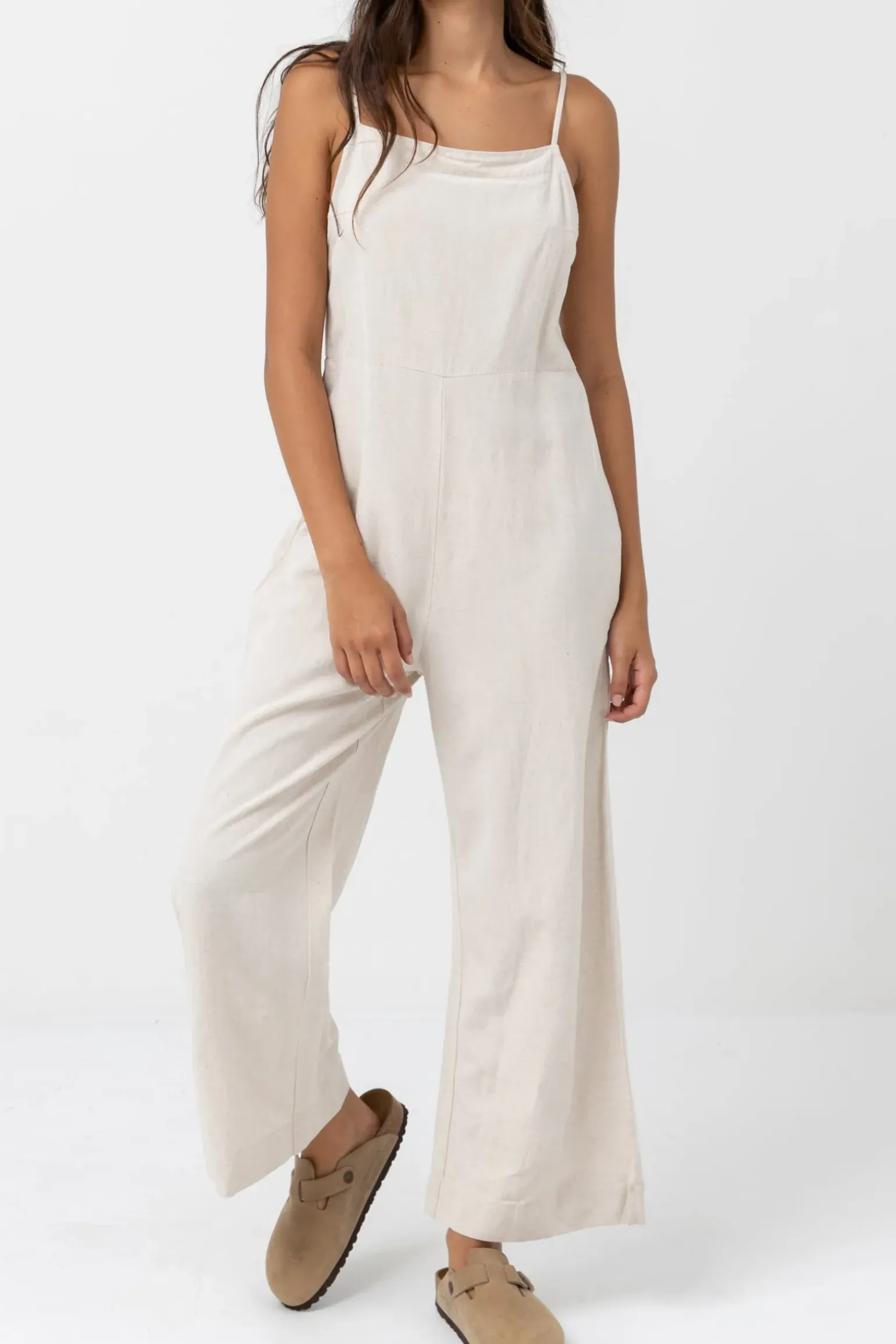 For soft sunny days moving through the cool breeze, the Classic Jumpsuit is cut from a breathable ramie fibre blend, an easy wearing clean and stylish look to wear through the seasons. —- Material 60% Rayon 40% Linen —- Features A linen look with a soft hand feel and subtle drape Straight apron style neckline Adjus