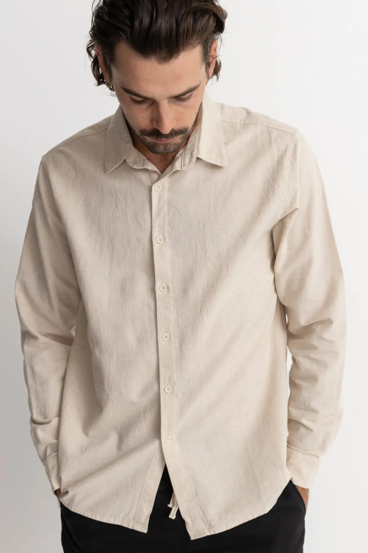 A year round staple spun from a breathable linen cotton blend fabrication, the Classic Linen Long Sleeve Shirt is a soft-touch standard fit made for laid back days. —- Material 55% Linen 45% Cotton GSM: 145g —- Features Linen cotton blend fabric Straight hem Standard fit Rhythm classics trims —- Size & Fit Jo