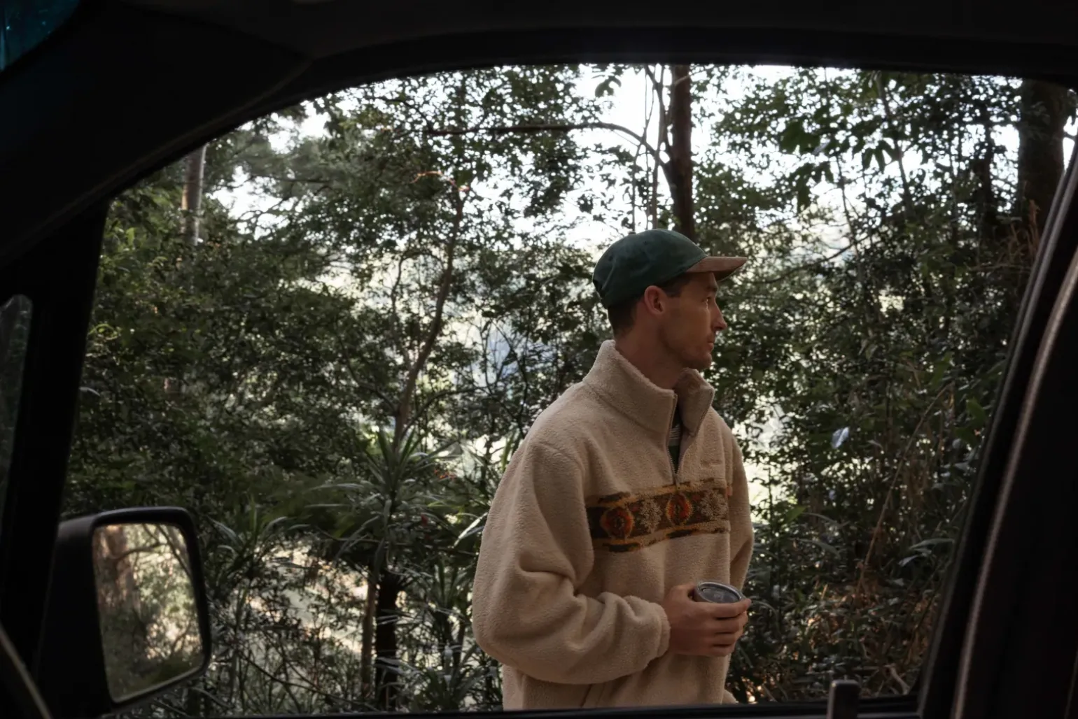 The Dusty Quarter Zip offers an unstructured, relaxed fit with a fleece paisley center panel. Subtle front detailing and a quarter zip make it a cozy yet stylish choice for laid-back coastal evenings.