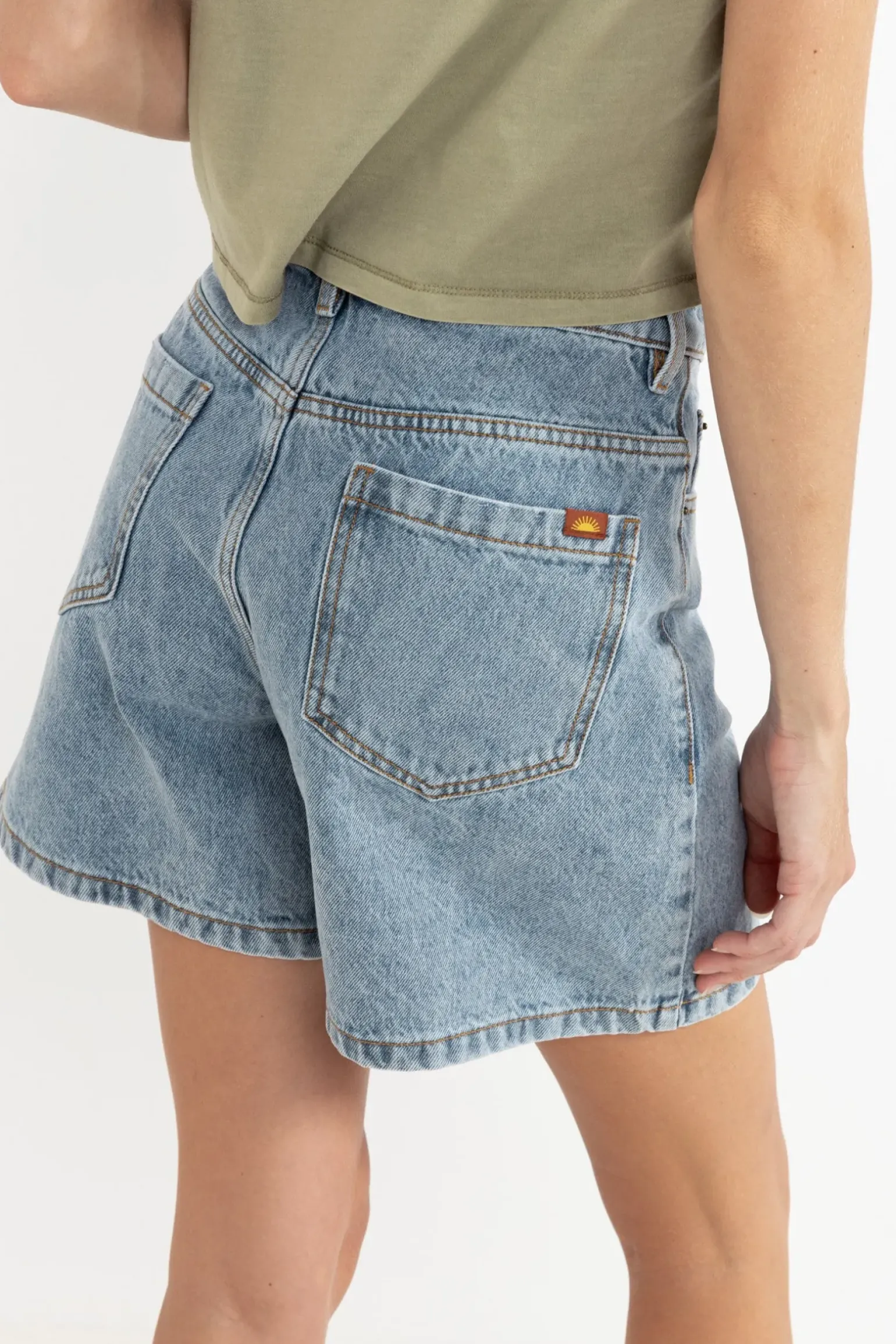 The Washed Blue Escape Denim Shorts, made from 100% cotton denim, offer a refreshing take on classic summer wear. These high-rise, subtly A-line shorts with a rigid blue wash embody the spirit of coastal escapes. Their relaxed leg, combined with a turn-back hem and a snug waist, makes them a staple for sun-kissed adventures.