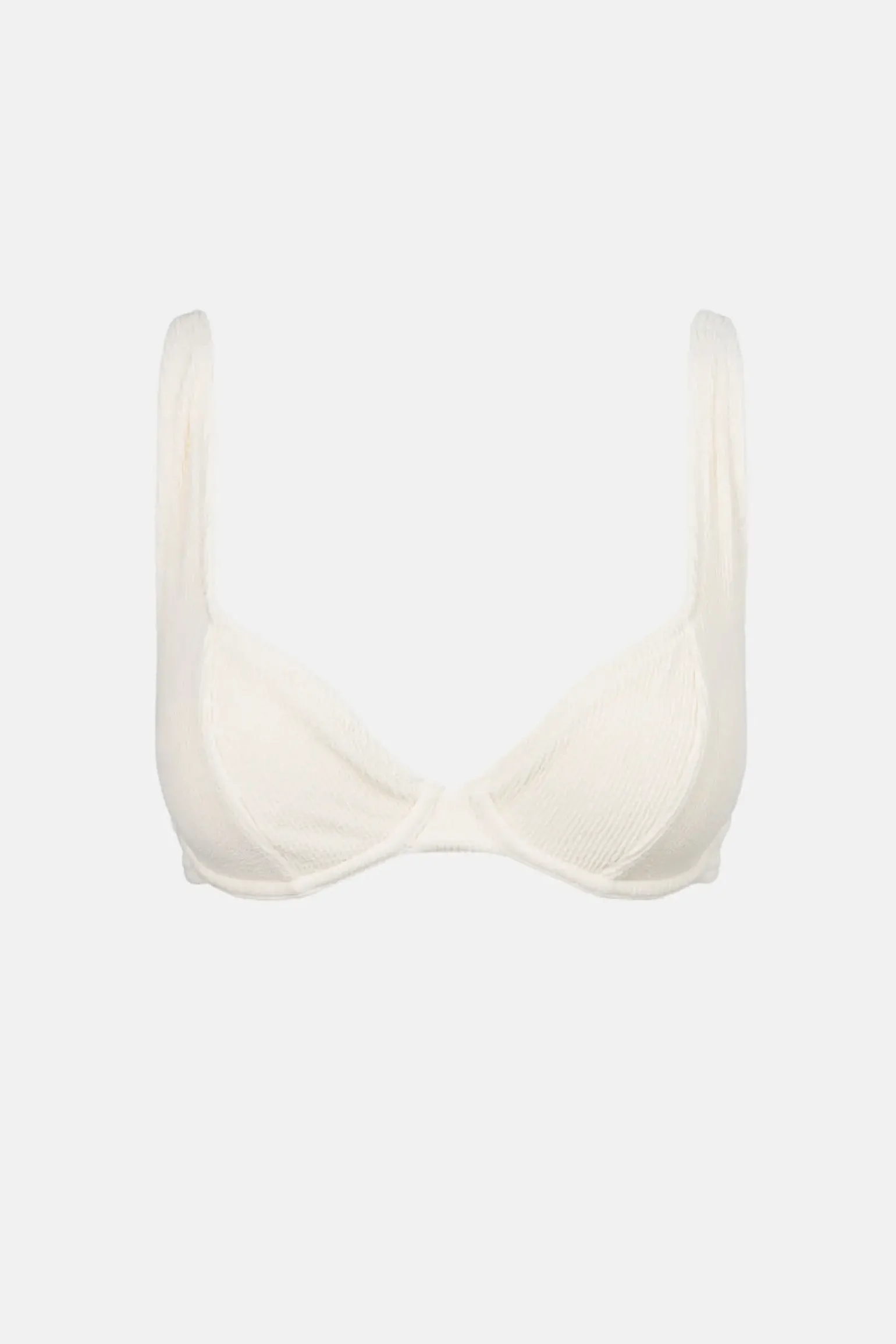 The crème underwire top combines support with style, featuring adjustable straps, a tie-back closure, and a flattering gathered bust. Ideal for A-D cup sizes. —- Material 92% Nylon 8% Spandex —- Features Recommended A-D Cup Wide soft adjustable straps Tie back Gathered detail on bust cups Branded back clasp —- Si