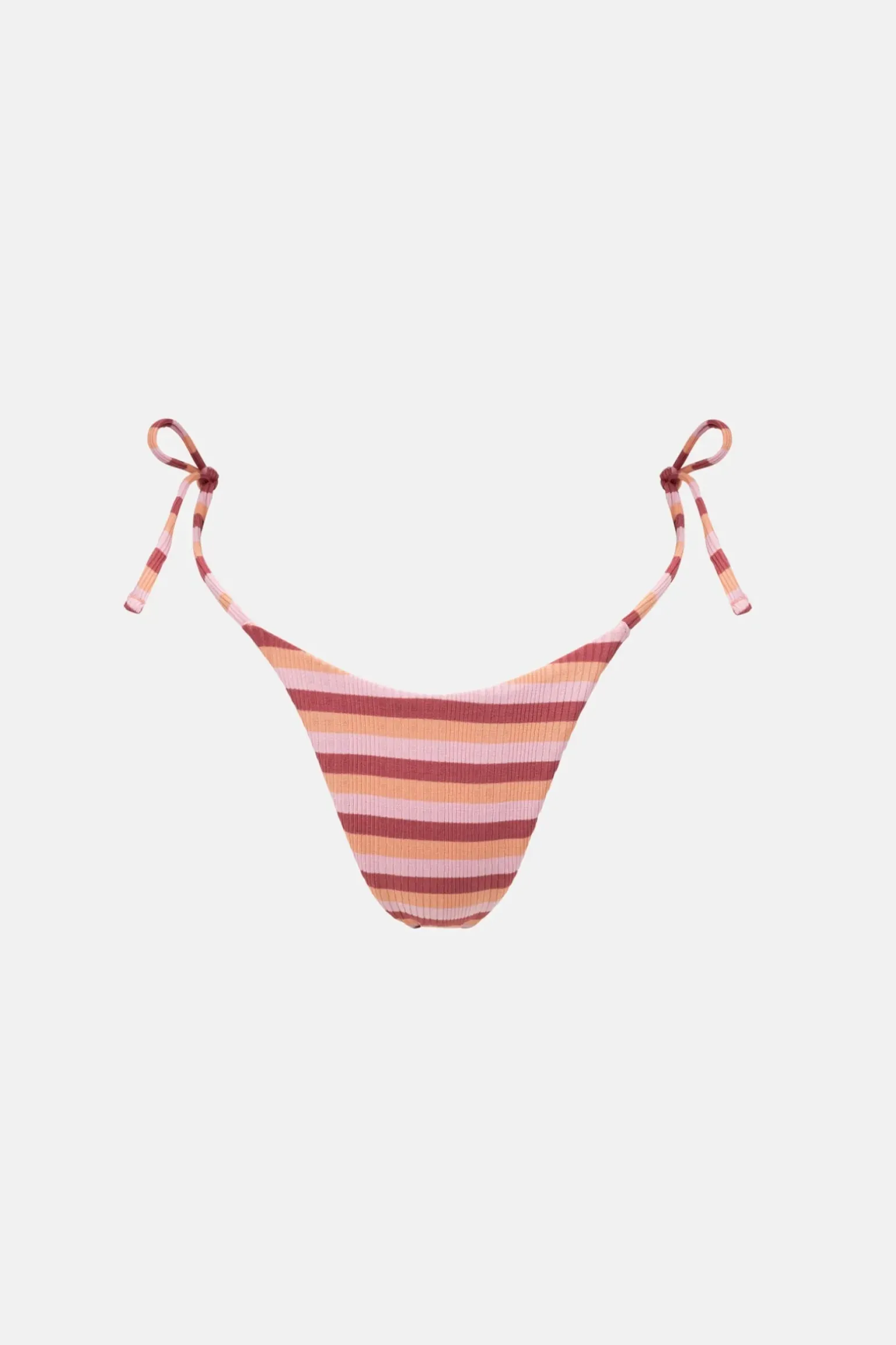 For a modern swimwear twist, the Ibiza Stripe Rib Tie Side Hi Cut Pant in Pink delivers. Adjustable tie sides ensure a perfect fit, while the high-cut silhouette elongates the leg for an effortlessly chic seaside look.
