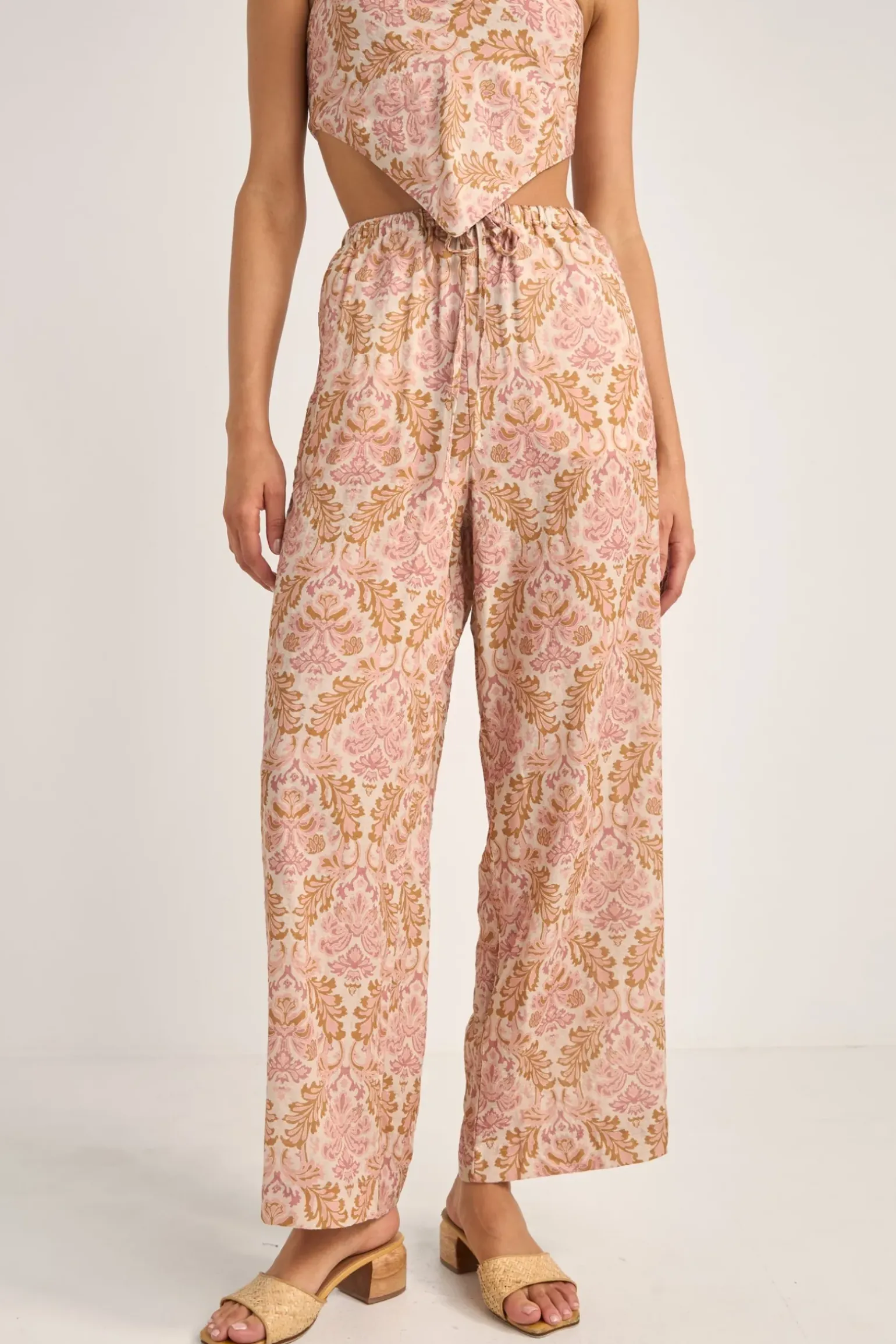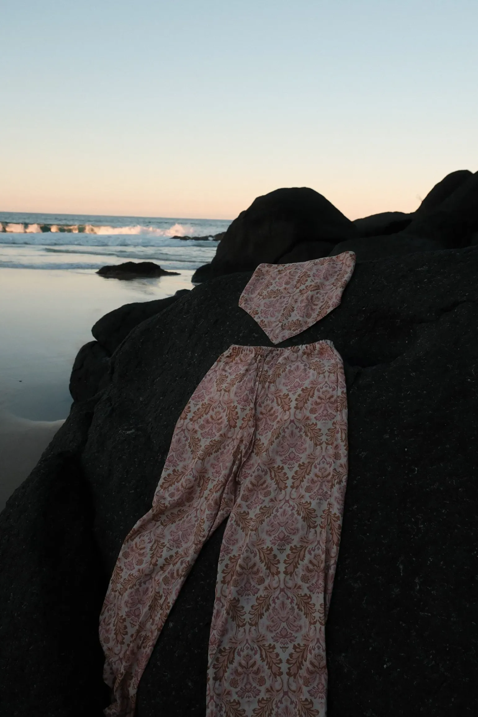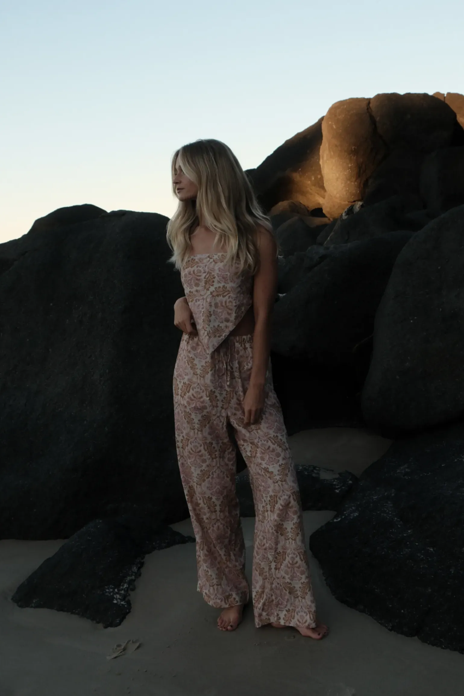The Jessie Paisley Drawstring Pant in Rose is a breeze to wear. Featuring an easy-to-wear straight leg design with an encased drawstring, these pants combine comfort and style, perfect for your coastal adventure