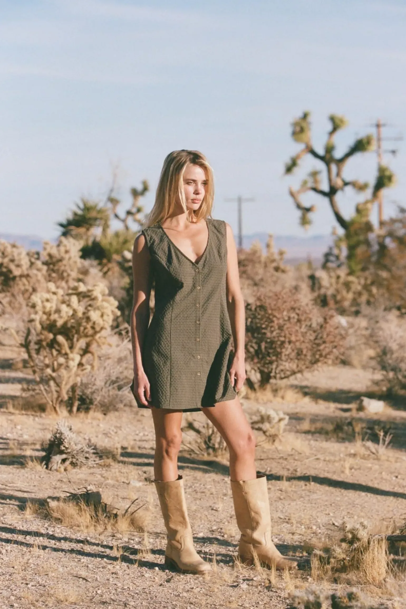 Classic meets modern in the Louise Check Mini Dress in Olive. Featuring a front button closure and back lace tie detail, this dress balances structure with feminine charm for laid-back sophistication.