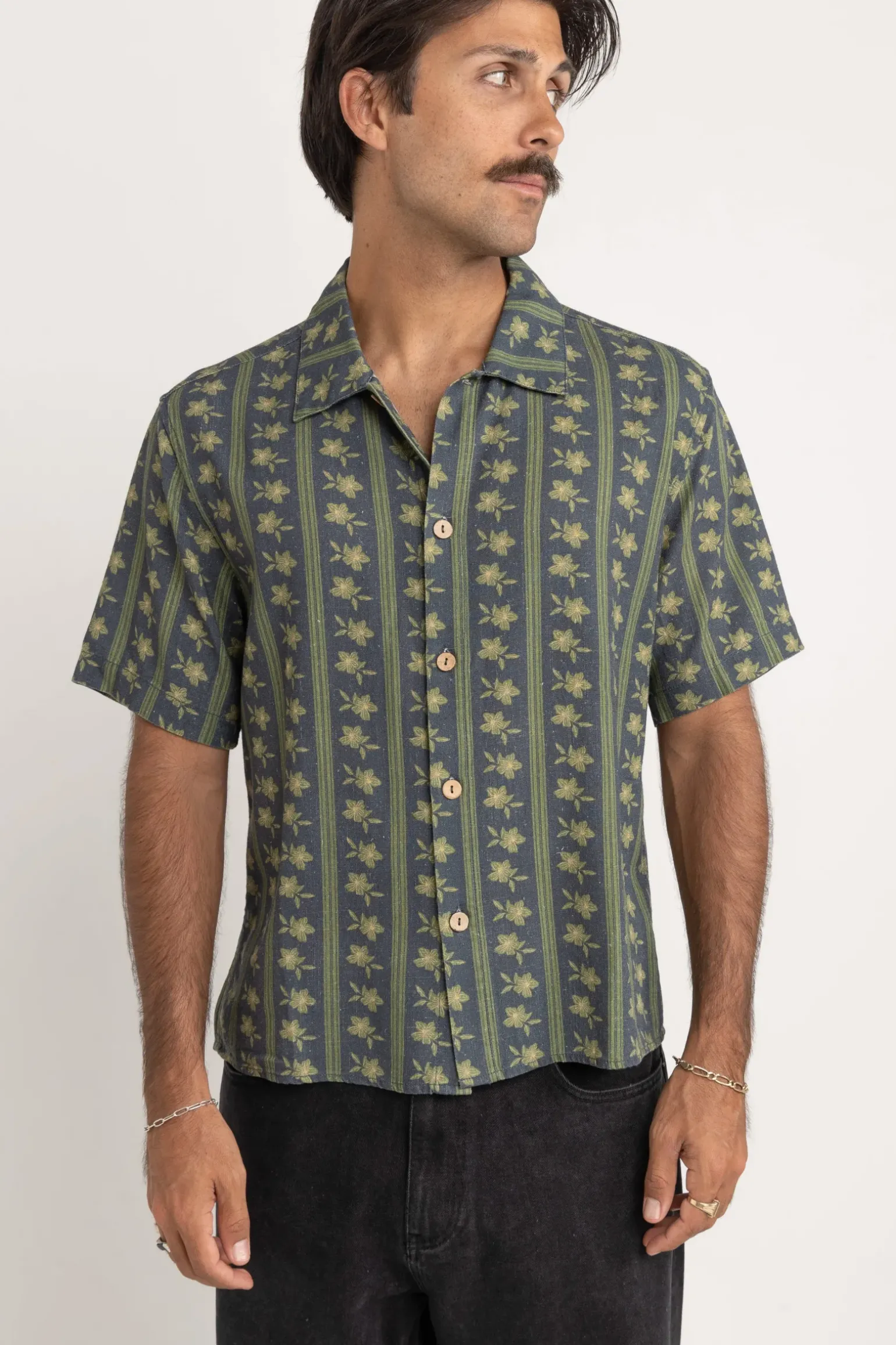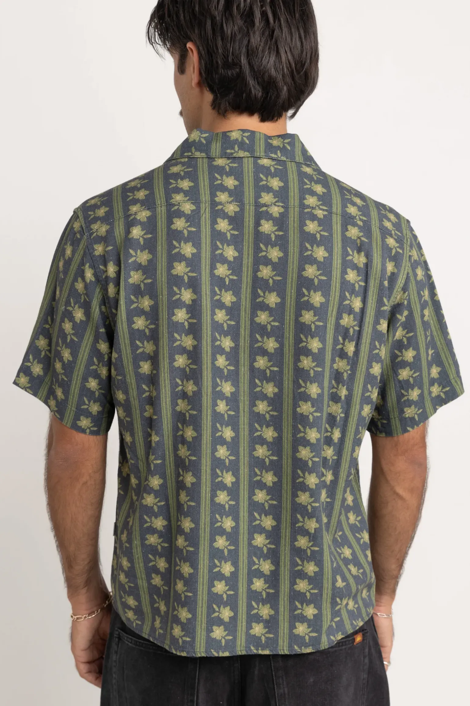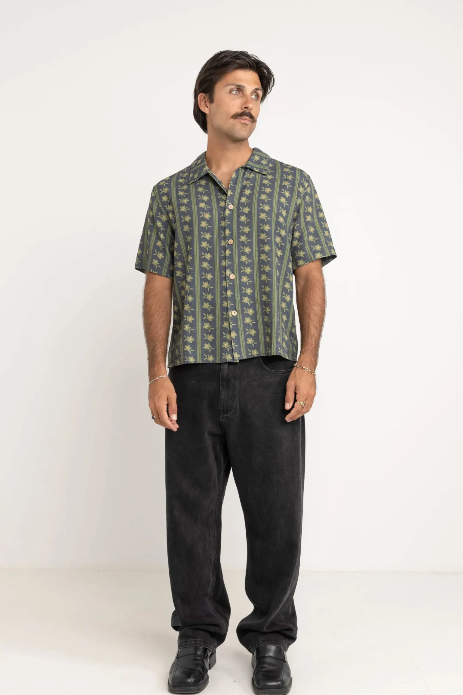 Stand out in the Overlap SS Shirt in Stone Blue. Featuring an all-over print and cropped fit, it’s finished with dyed-to-match buttons for an effortlessly coordinated look.