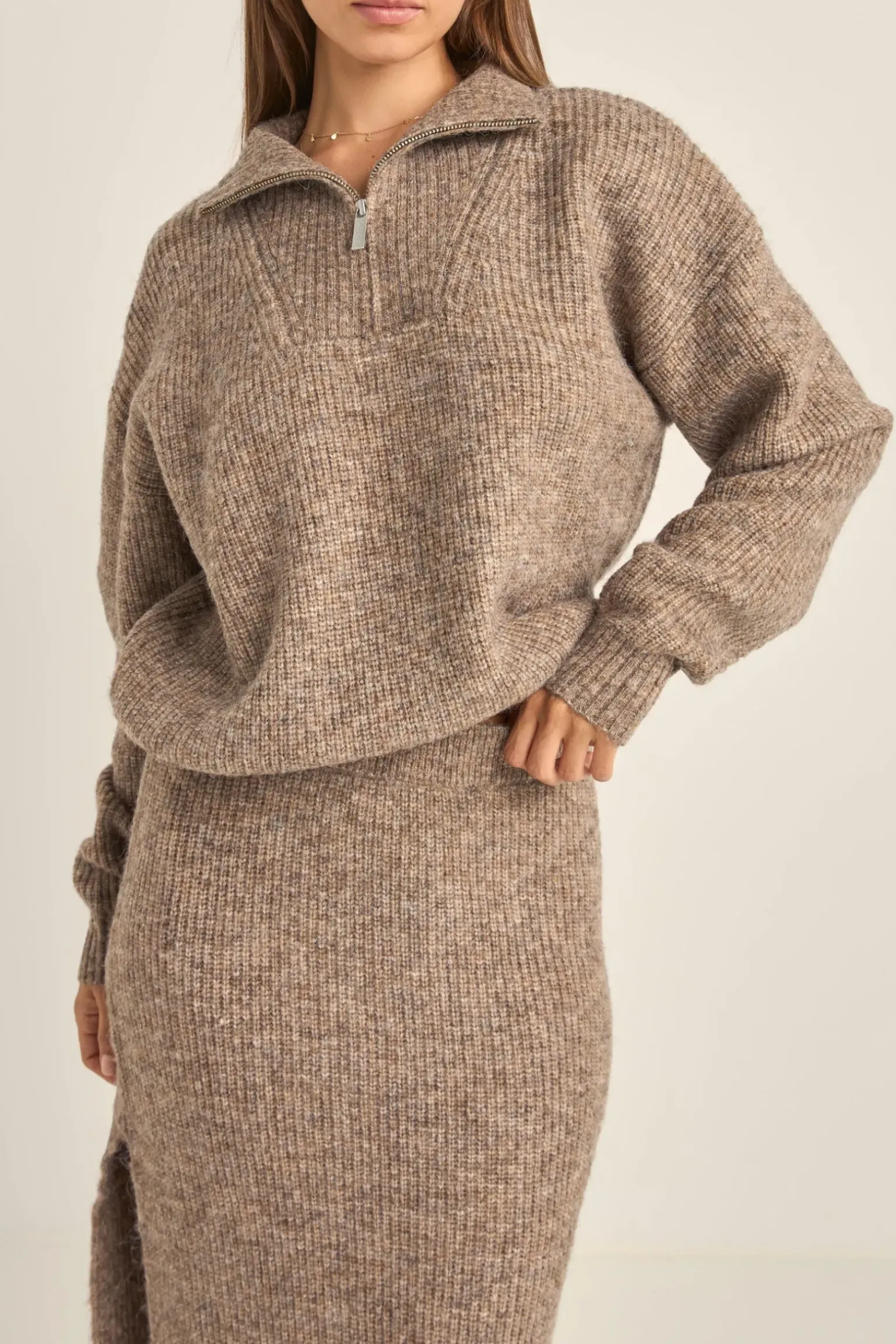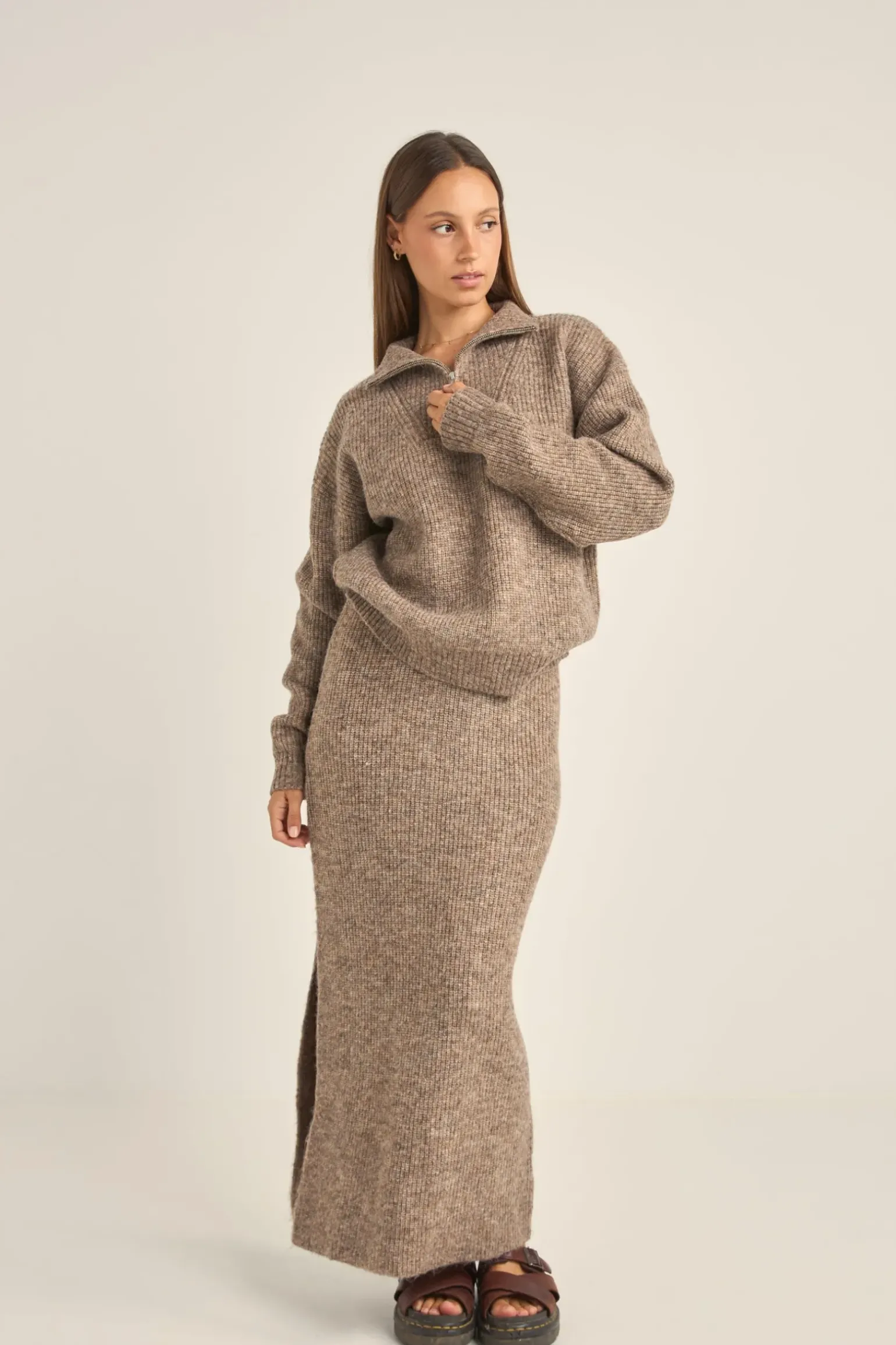 The Oatmeal Quinn Zip Knit, made from a heavyweight and cosy blend of nylon, acrylic, polyester, and wool, is your versatile companion for seaside adventures or city explorations. Its zip front and cropped, relaxed fit offer easy layering for a warm, stylish addition to any outfit.