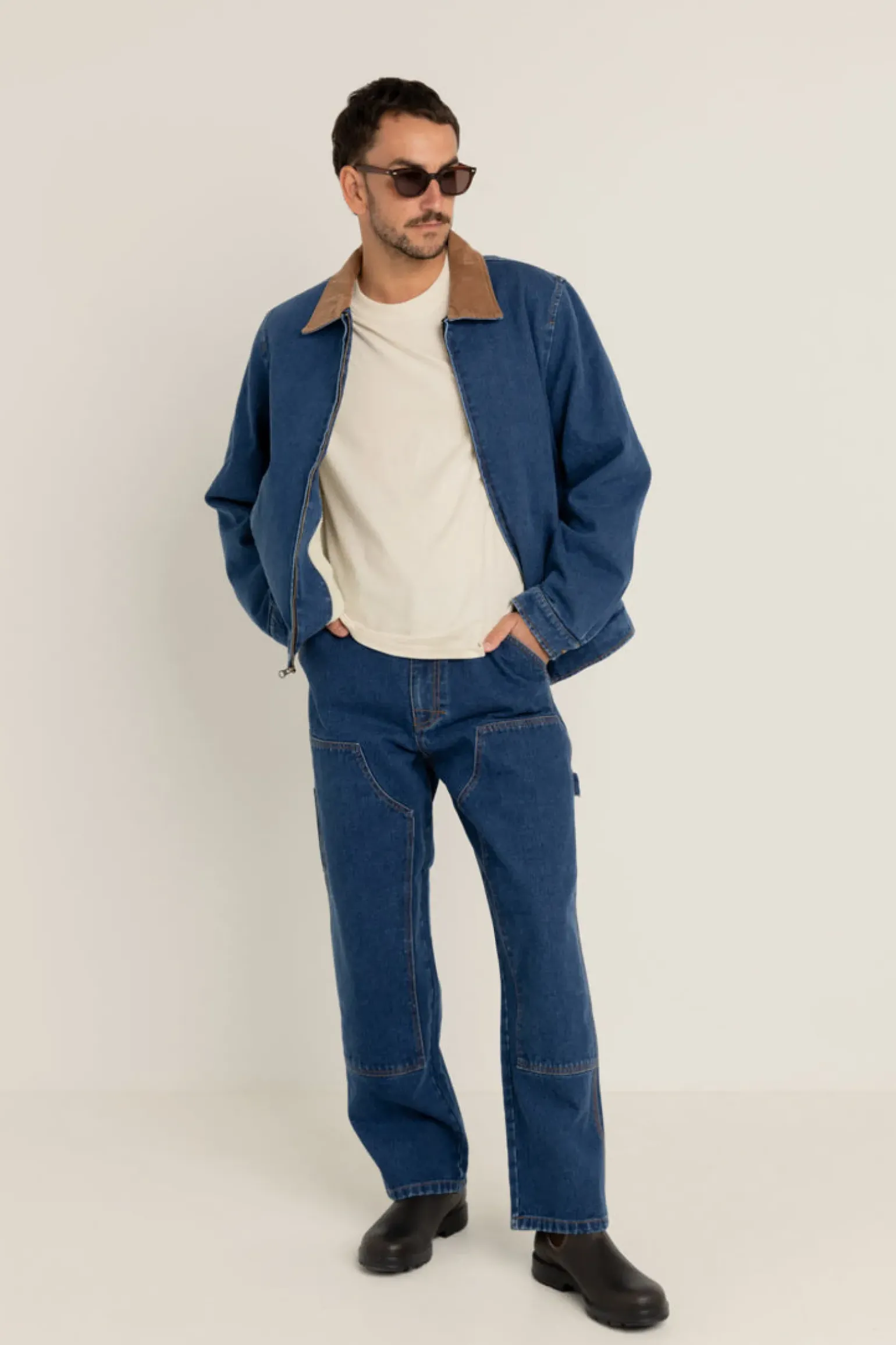 A heavy-weight washed denim jacket with a contrast cord collar, branded trims, and a button-down front. Vintage-inspired for effortless coastal layering. —- Material 100% Cotton —- Features Heavy weight washed denim Contrast cord collar Branded trims Button down front —- Size & Fit Model wears Medium in all t