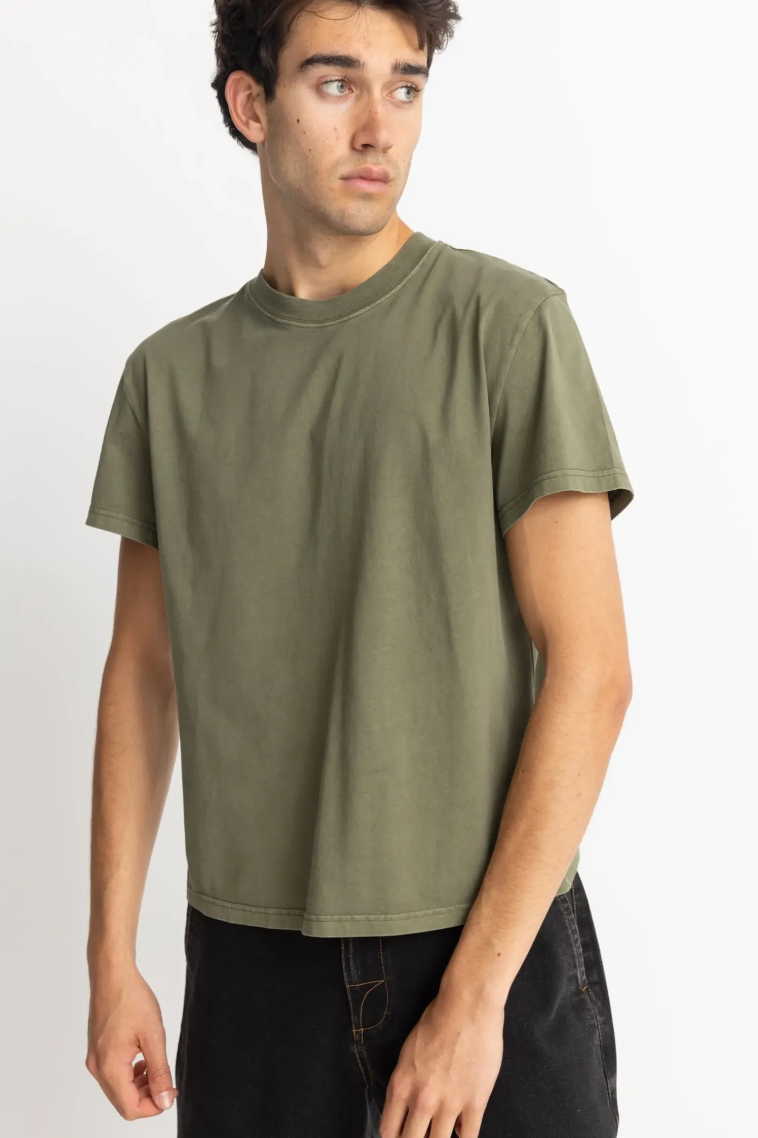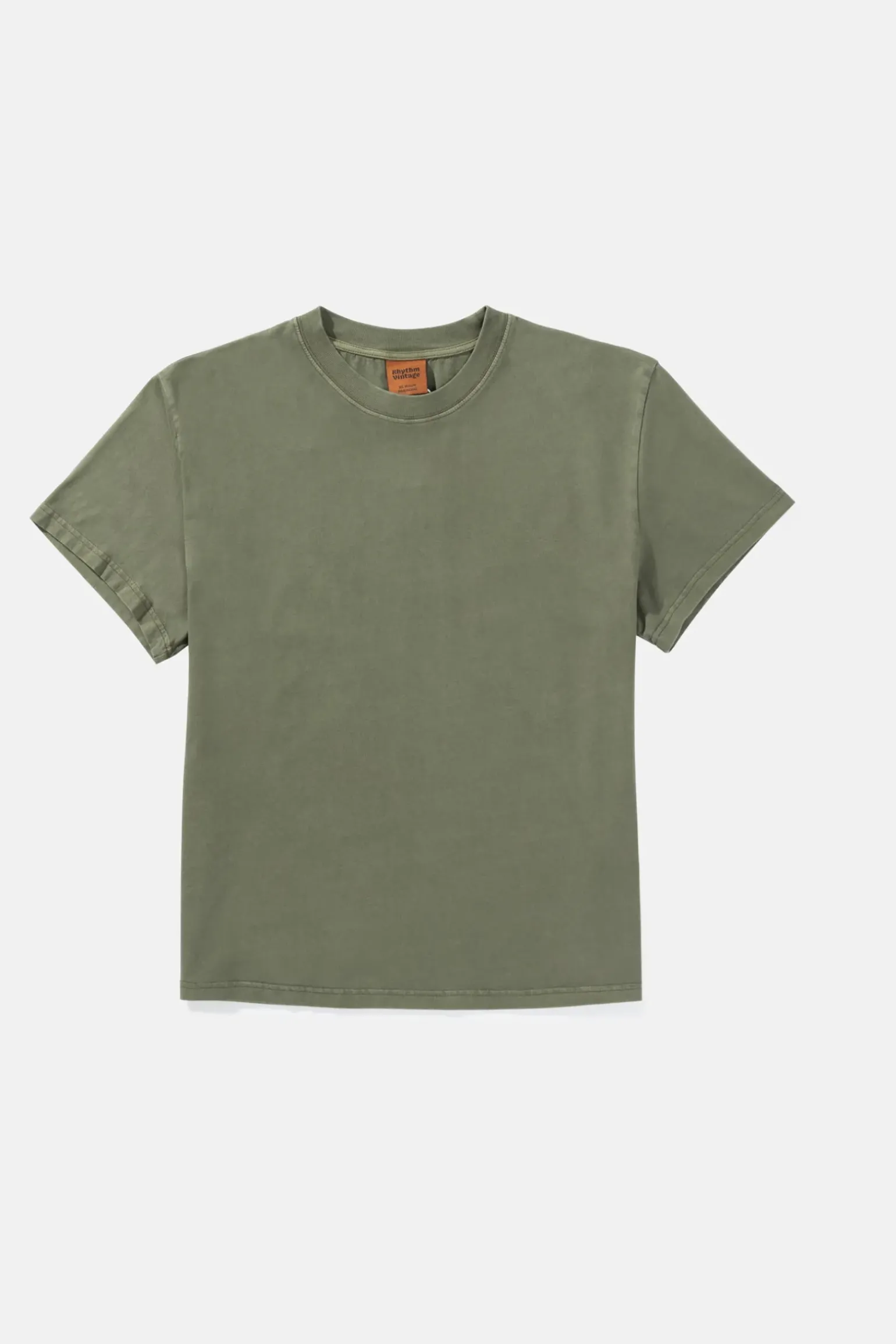 Our newest addition is the latest surplus, band style fit inspired by original sport and military t-shirts. Please note, our Band Tees are cropped shorter at the hem and sleeve. If you prefer an oversized fit, we suggest sizing up. —- Material 100% Cotton Jersey —- Features Boxy fit Cropped hem and sleeve Overdyed