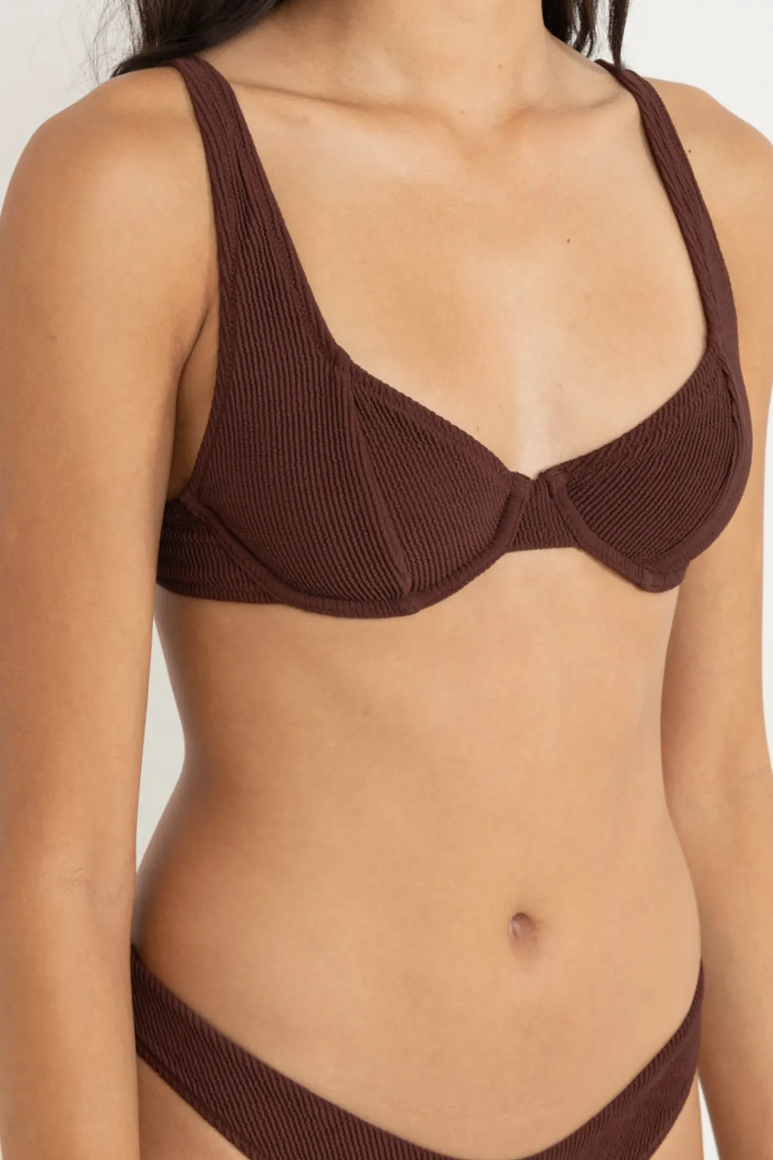 Supportive and stylish, this café underwire top is perfect for A-D cup sizes. Adjustable straps, tie-back closure, and gathered detailing offer a flattering fit. —- Material 92% Nylon 8% Spandex —- Features Recommended A-D Cup Wide soft adjustable straps Tie back Gathered detail on bust cups Branded back clasp —-