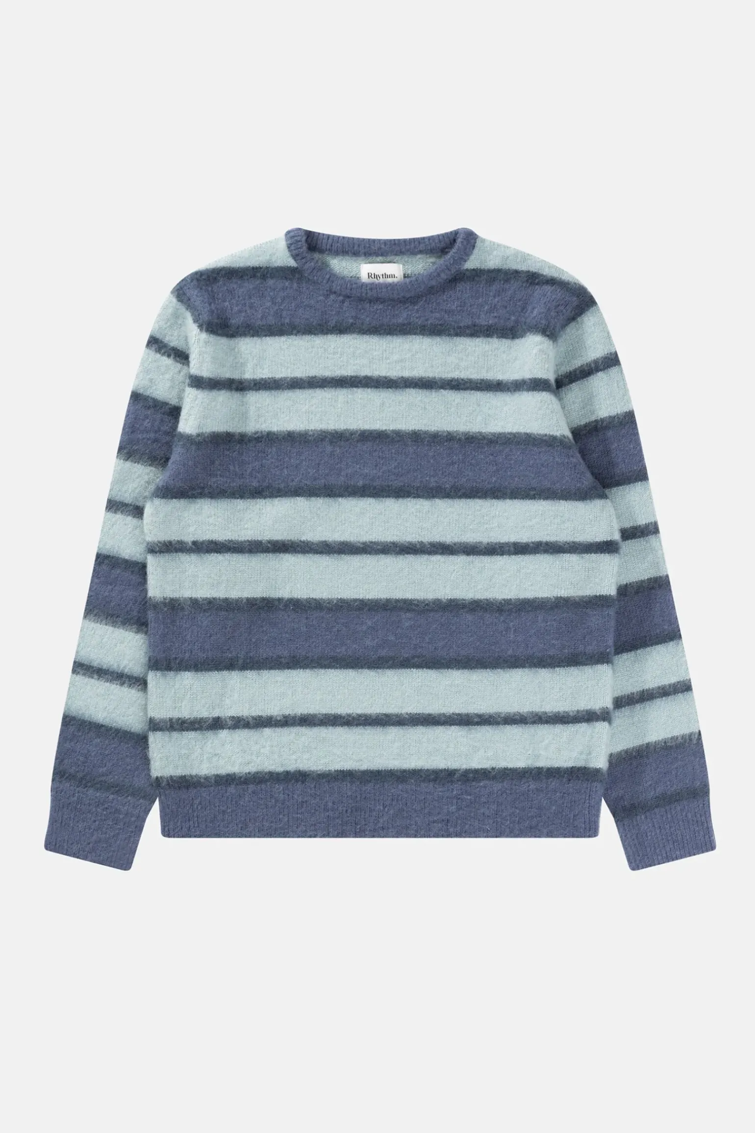 Elevate your coastal style with Harvey Mohair Stripe Knit in Blue. This regular fit, fluffy cotton knit features brushed knit detail, a classic crew neck, and signature Rhythm trims for a blend of comfort and timeless design.