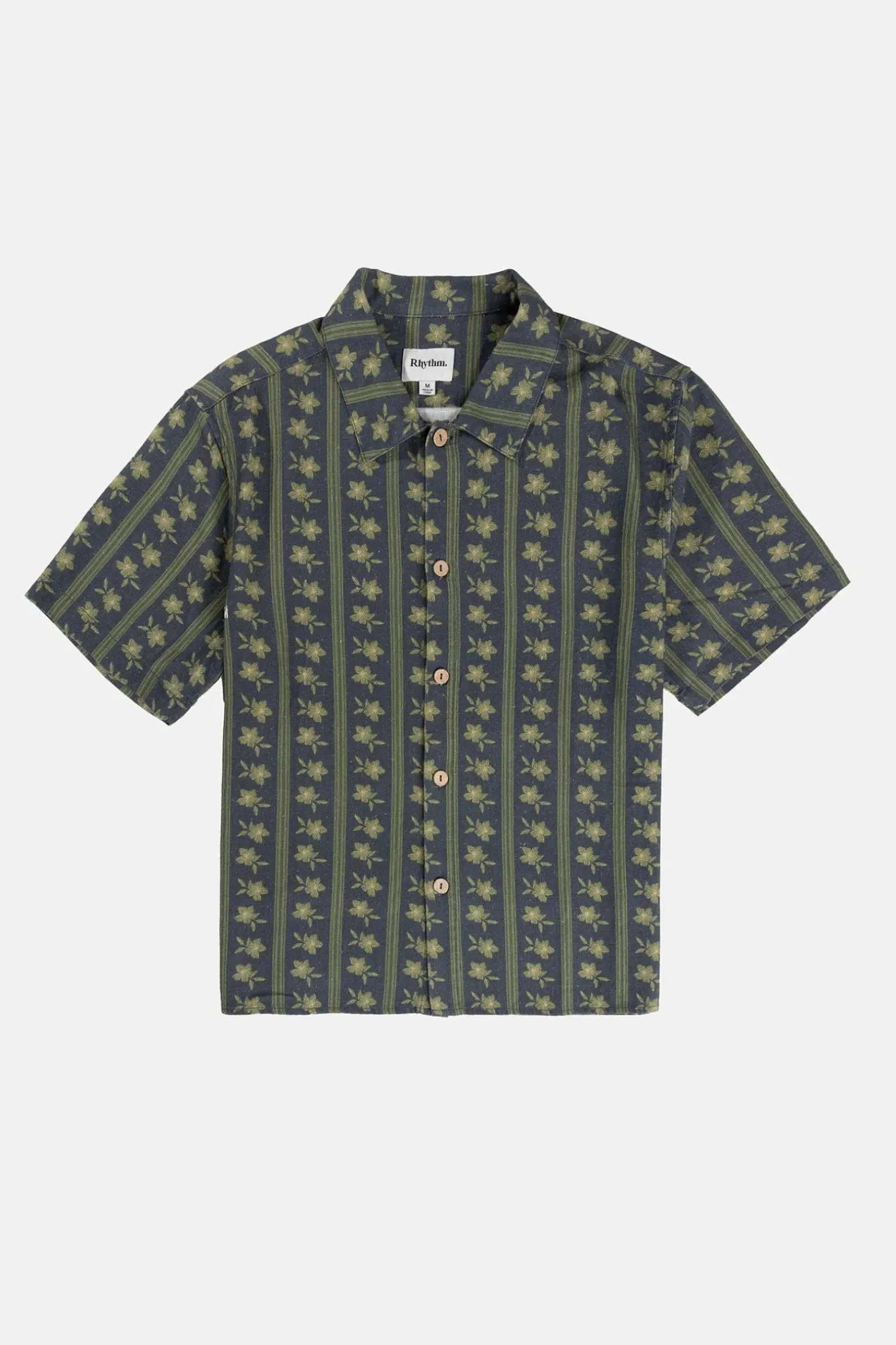 Stand out in the Overlap SS Shirt in Stone Blue. Featuring an all-over print and cropped fit, it’s finished with dyed-to-match buttons for an effortlessly coordinated look.
