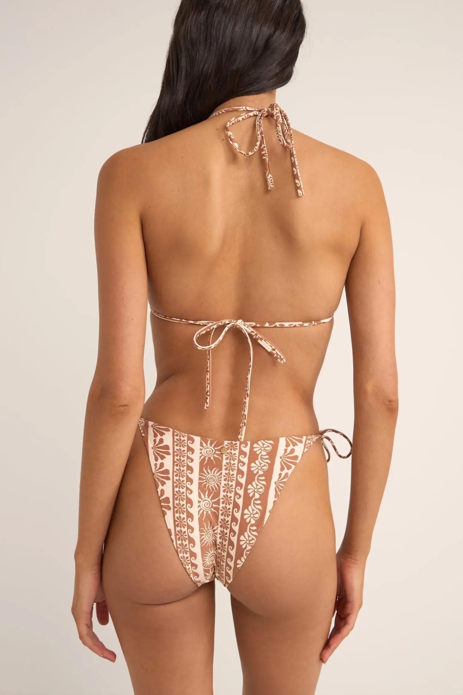 Navigate the tides in style with the Seafarer Slide Tri Top in Brown. Crafted from 82% recycled polyamide, this halter style top offers adjustable comfort with its neck and under bust ties. The removable padding and metal coin logo add practical touches to its timeless design, making it a staple for those sun-soaked days at sea.